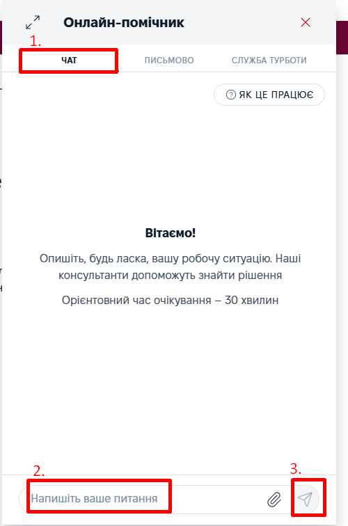 - перейдіть у розділ «Чат» у віджеті Онлайн-помічника;