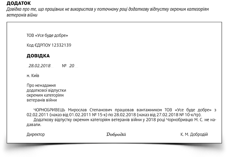 Якщо в поточному році працівник не скористався означеною відпусткою, не компенсуйте її при звільненні — видайте довідку (див. Додаток). До кінця календарного року працівник зможе отримати відпустку на наступному місці роботи.