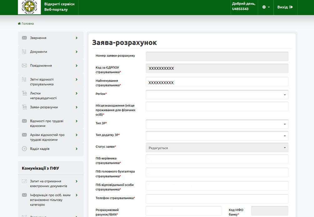 Крок 1. В особистому кабінеті страхувальника на вебпорталі е-послуг ПФУ зайдіть у розділ «Заяви-розрахунки» й оберіть кнопку «Створити нову».