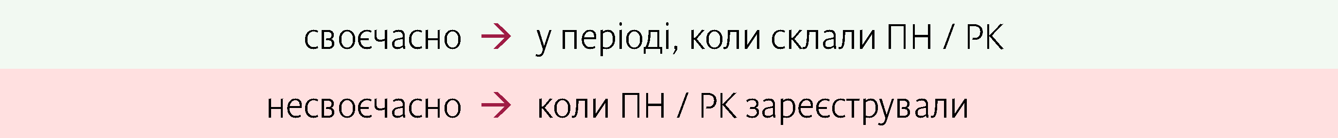 Період, у якому виникає право включити ПН / РК до податкового кредиту в декларації, залежить від того, чи своєчасно їх зареєстрували: