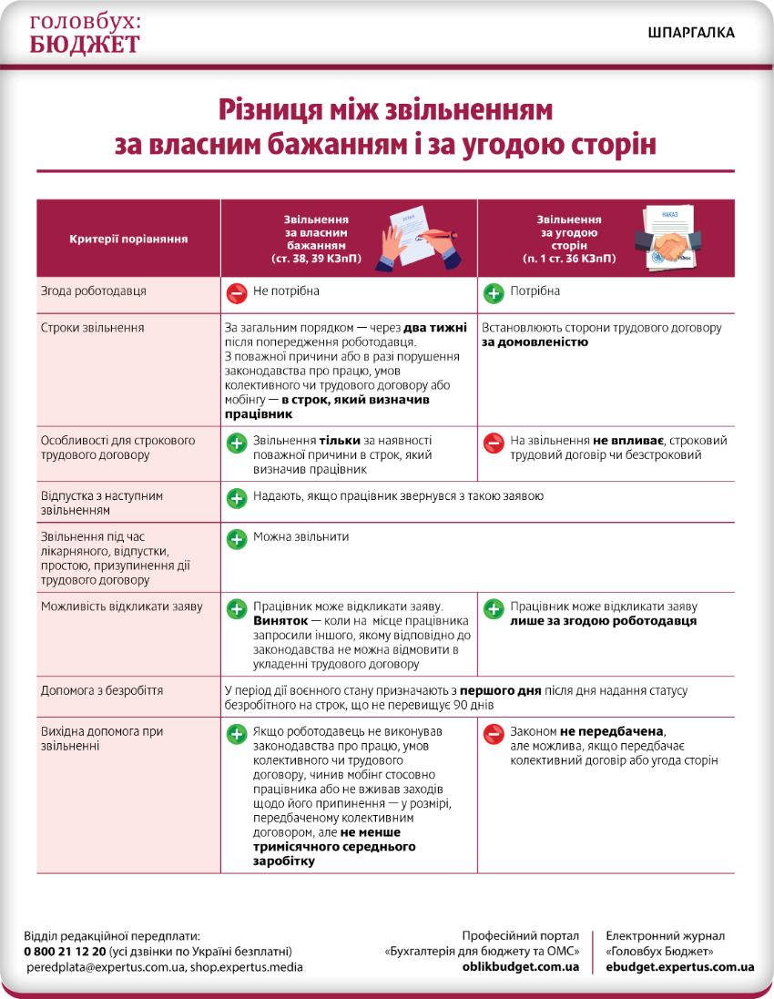 Різниця між звільненням за власним бажанням і за угодою сторін. Шпаргалка